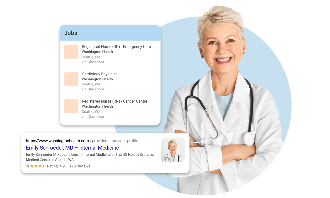 - Your Physician profiles can stand out on the search engine results page with reviews, FAQs, physician profile images, and video rich results. These enhanced search results can help you get the click so you can book the appointment.